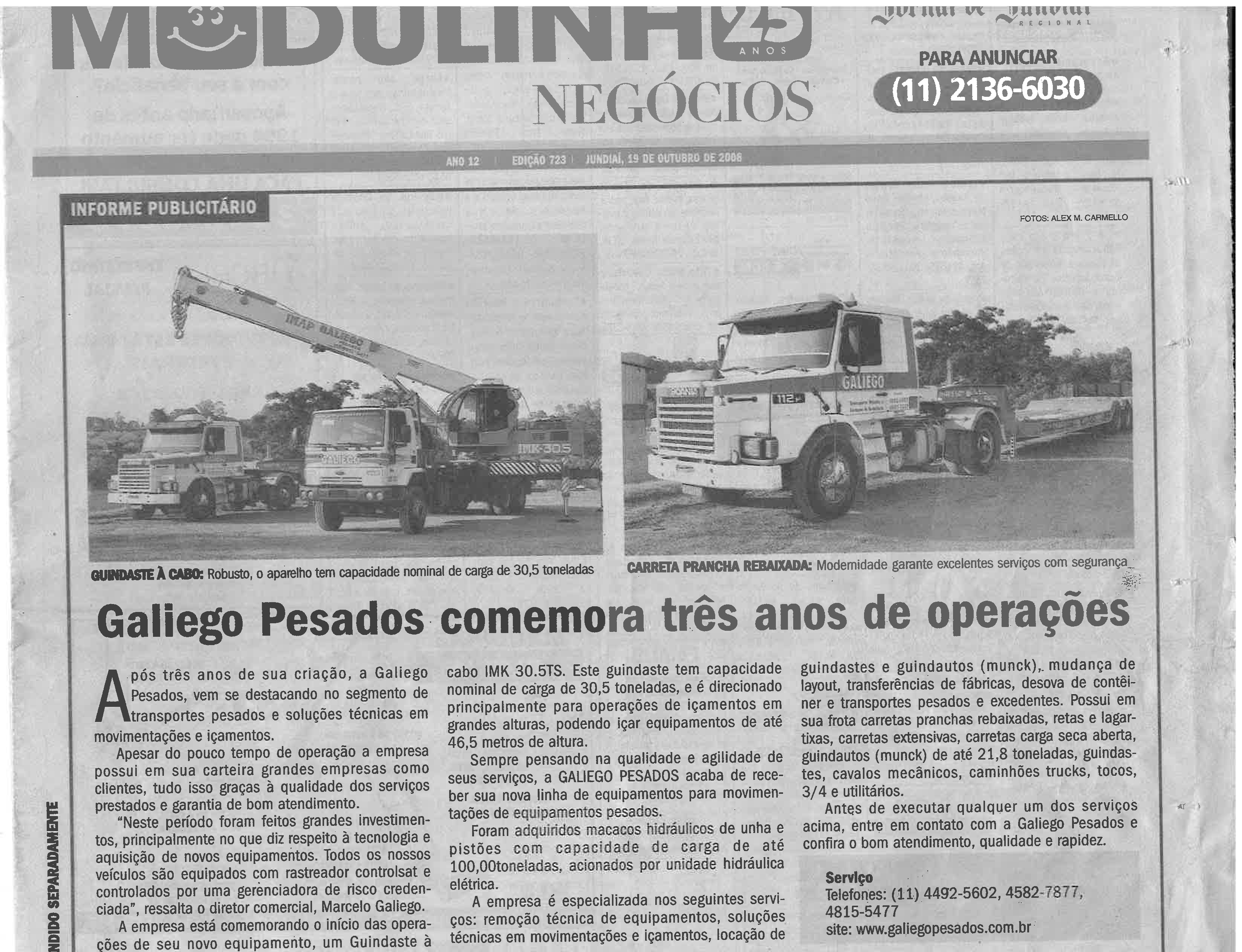 Ao longo dos anos buscando oportunidades de negócios e trazendo pessoas importantes que agregaram muito valor a nossa Empresa, construímos aos poucos a Galiego transportes pesados, sendo atualmente uma empresa altamente conceituada no segmento de transporte rodoviário e movimentações de cargas e equipamentos super dimensionados.